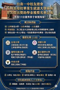 【校友會專訊】 台南一中校友總會為鼓勵學業表現優異、追求卓越的年輕校友,今年首度開辦**『114 年母校畢業生…