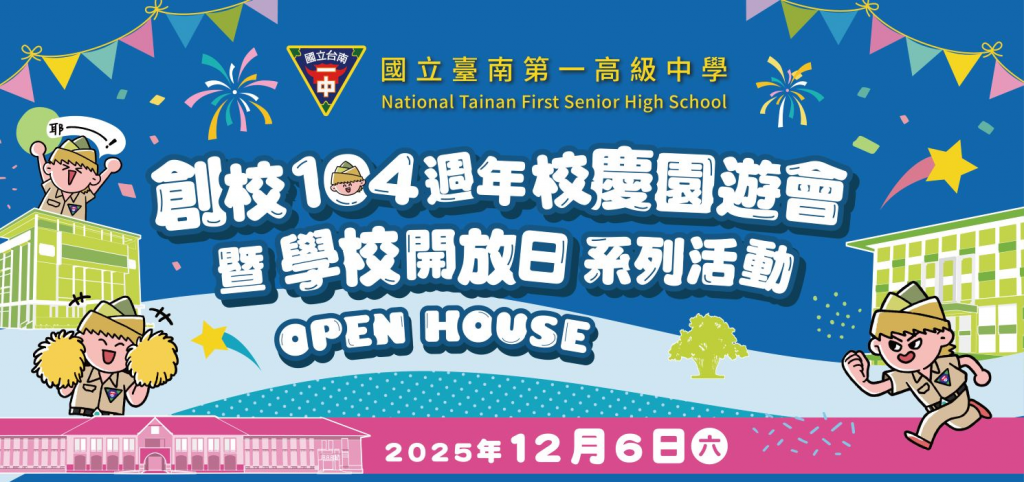 歡迎各高中、國中、國小學生、家長,以及所有社區民眾一同參與誠摯邀請您一起開箱竹園岡,感受南一中的多元活力與百年風華。